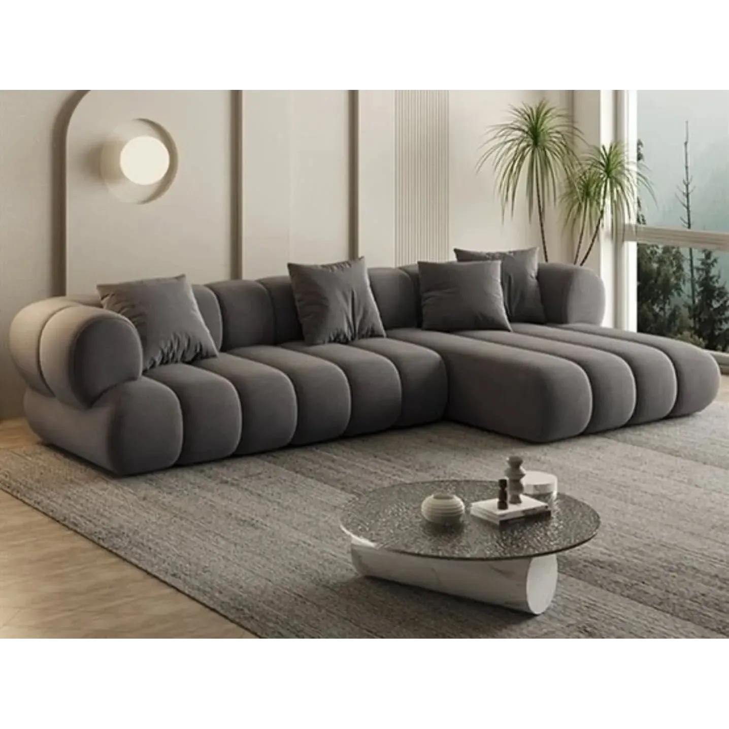 Graphite Cloud Plush Grey Velvet Sectiol