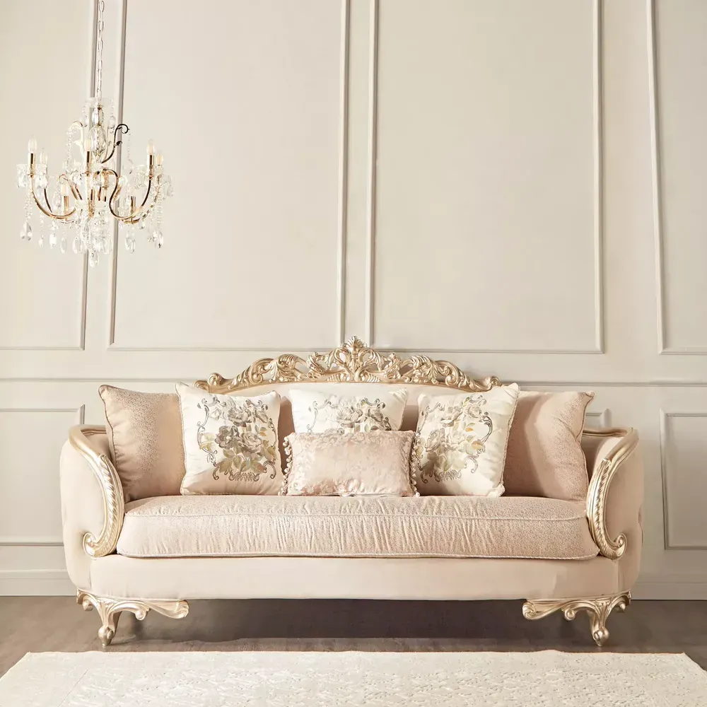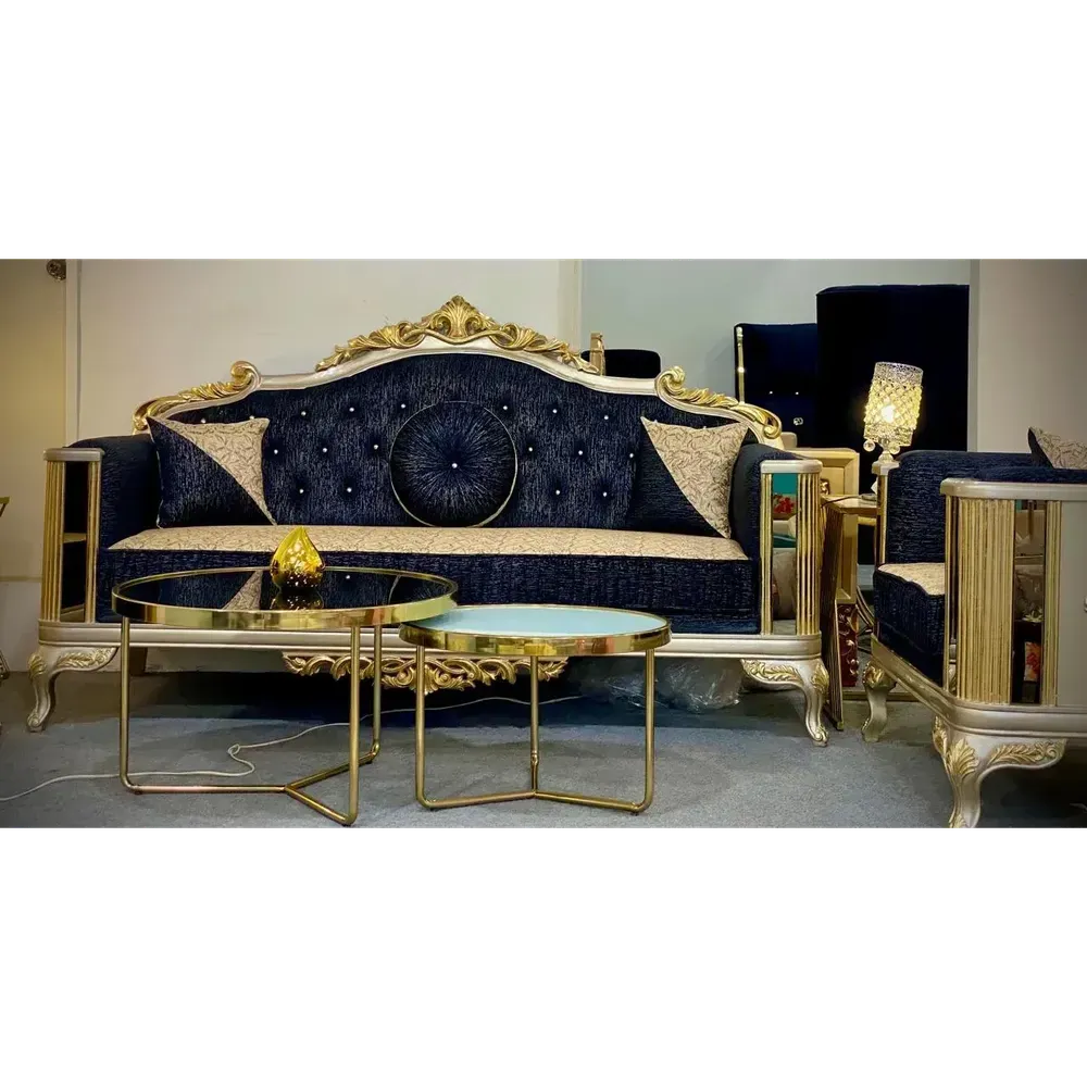 vy Blue Majesty Sofa with Gold Ribbon Frame and Crystal Tassels
